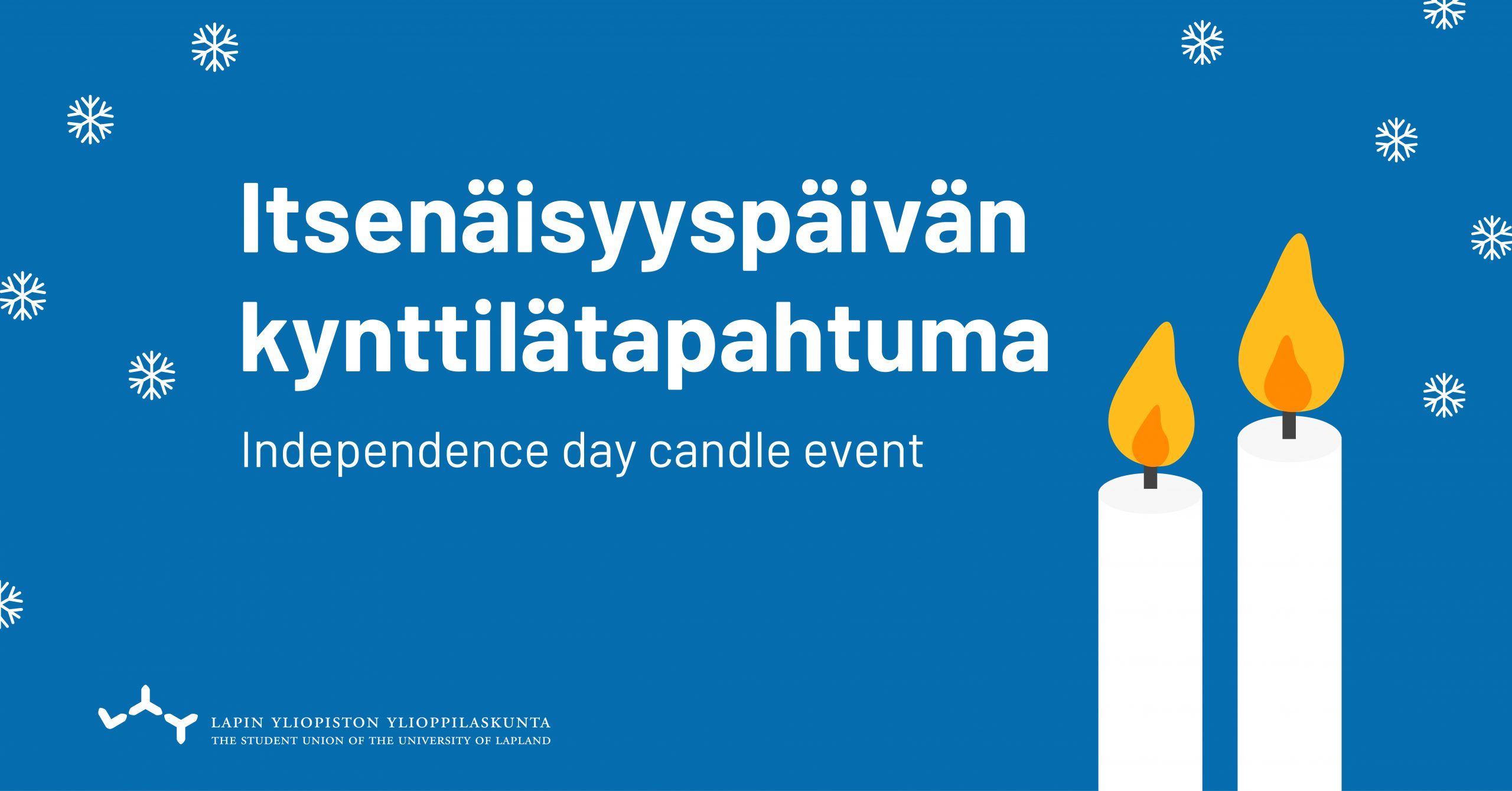 This year, LYY will participate in the celebration of Independence Day by lighting two candles in the window according to tradition. The corona-safe tradition dates back to 1927 at the latest and celebrates Finland’s independence and commemorates those who took part in the wars. You can take part in the event by lighting two candles in your window on Independence Day. If you don’t have candles yet, don’t worry, LYY will give out a limited number of them at the F-wing service point on Friday 4.12., starting at noon.